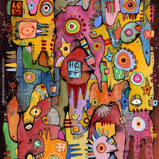 Watercolor, ink, acrylic, enamel, graphite on 300gr paper and digitally edited.